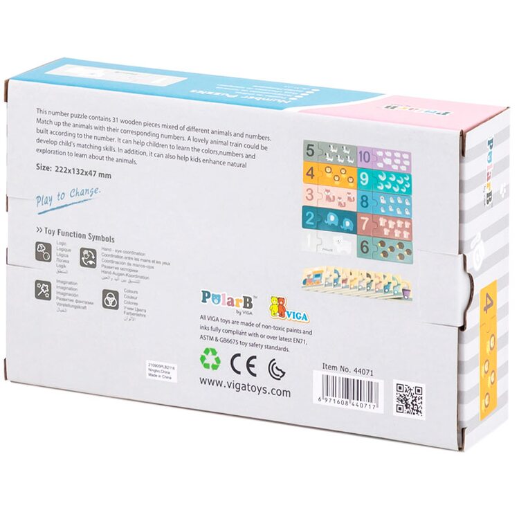 Пазл "Паровозик" сделан из 31 деревянных деталей, с гладкой, хорошо отшлифованной поверхностью. Игрушка будет пользоваться большим успехом как у мальчиков, так и у девочек, ведь большинство малышей очень любят паровозики. Родителям она тоже понравится – ведь с ее помощью малышу будет намного проще освоить азы математики, и сделает он это играя.