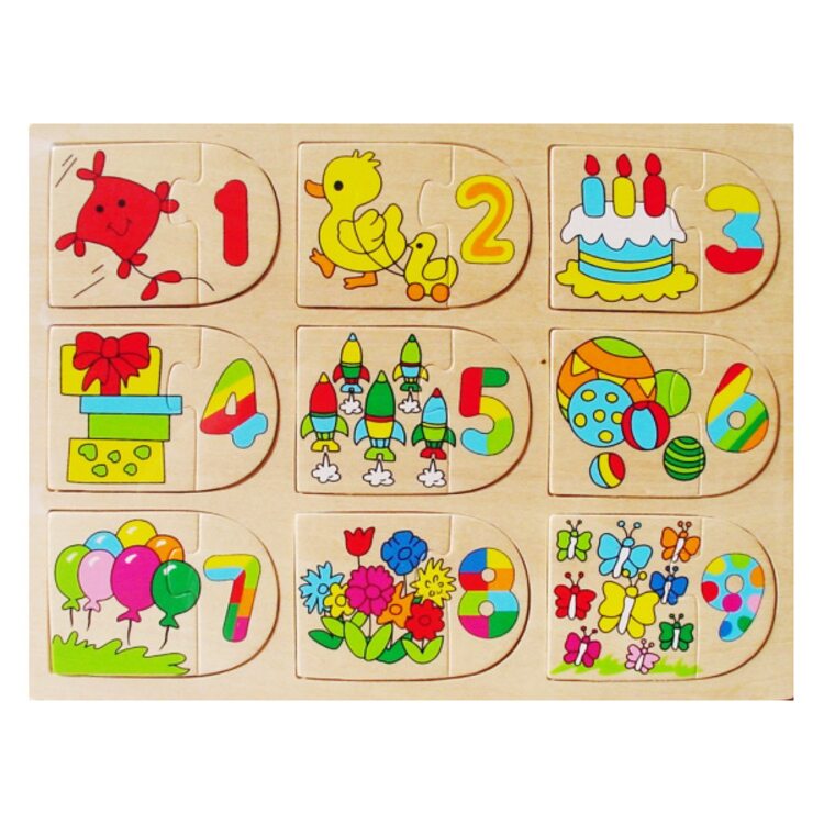 Данный пазл представляет собой набор цифр от одного до девяти. Каждой цифре сопутствует изображение по теме. Игрушка вырабатывает в ребенке математические навыки, логическое мышление, способность узнавать предметы и считать их количество. Благодаря простоте и красоте, она интересна в любом возрасте. С помощью пазла можно не просто знакомиться с новыми цифрами, но и учиться считать количество предметов. Для детей постарше можно переходить на сложение и вычитание на основе представленных картинок. Пазл прослужит не один год, он прочный и крепкий, изготовлен из дерева и полностью безопасен для работы с малышами.