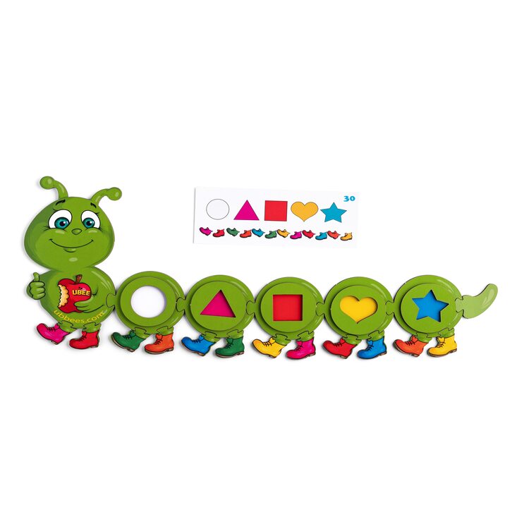 Деревянный пазл в виде гусеницы, которую нужно собрать как пазл. Задача не простая для крохи, ведь для этого понадобится смекалка, кропотливость, пространственное мышление, логика и память. Собирая пазл, ребенок научится отличать цвета, познакомится с геометрическими фигурами. В комплект входят 15 двухсторонних карточек с заданиями, согласно которым ребенок должен собрать гусеницу в правильной последовательности с нужными фигурами определенного цвета, а также с правильного цвета башмаками - всего 30 заданий.