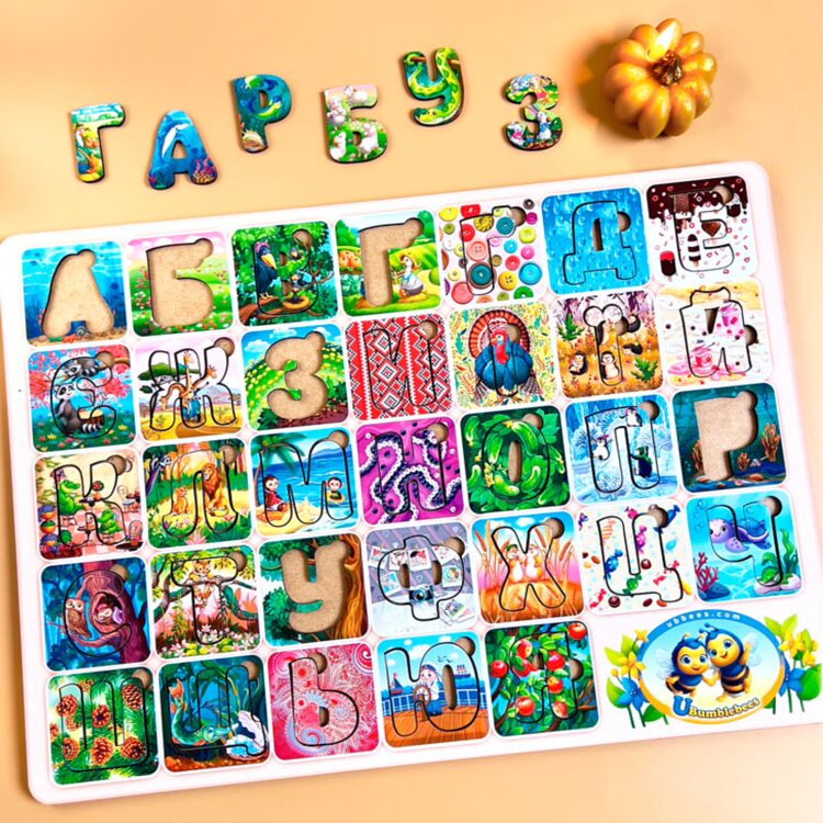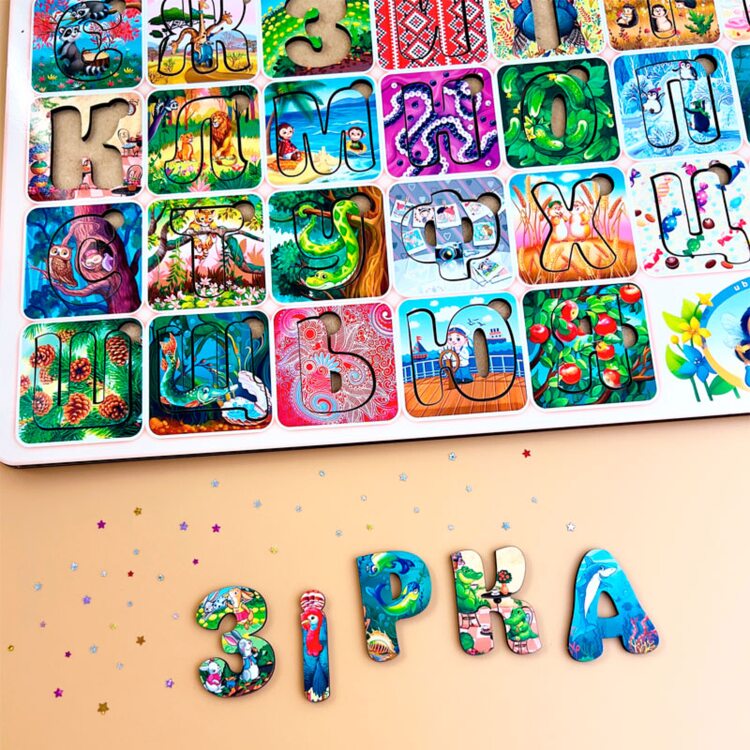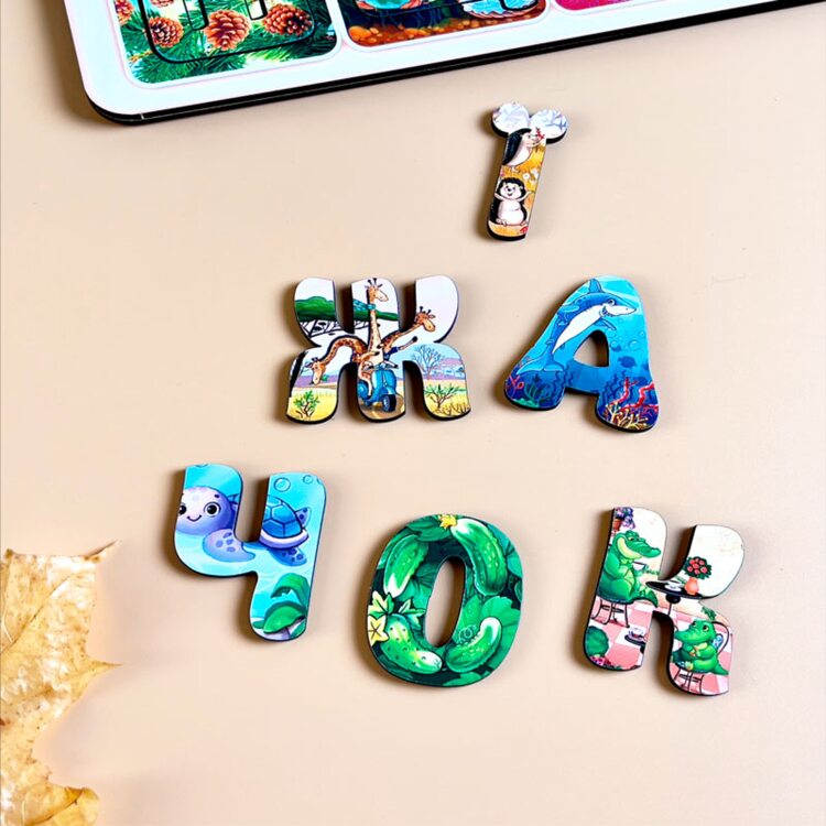 Если родители желают обучать буквам и чтению на родном языке, то украинский алфавит – идеальное решение! В составе материала нет опасных для здоровья химических соединений, это гипоаллергенный материал, которым могут играть даже совсем маленькие дети. Это отличная игрушка, развивающая чувства и ощущения ребенка, но кроме этого – отличная вещь для придумывания разных игр. Буквы красочные с оригинальным цветовым решением (различные детские принты), которые привлекают внимание малыша яркими картинками.