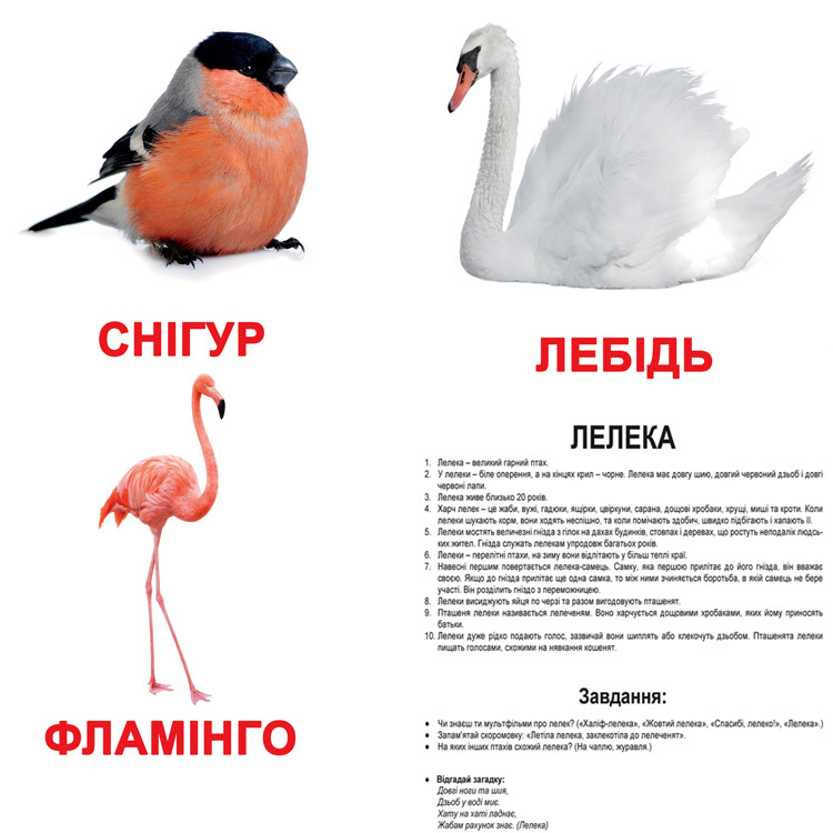 Набор карточек с разными видами птиц, полезной информацией и интересными фактами.