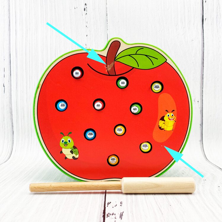 С подробным описанием игрушки можете ознакомится на страничке Магнитная рыбалка «Гусенички» яблоко