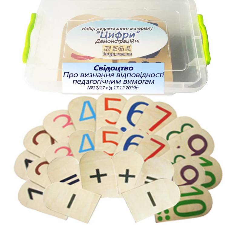 Набор большого размера плашек с нарисованными цифрами и знаками. Такой набор станет неотъемлемой частью проведения занятий по математике в дошкольных учреждениях, центрах раннего развития, на курсах дошкольной подготовки, в младшей школе.