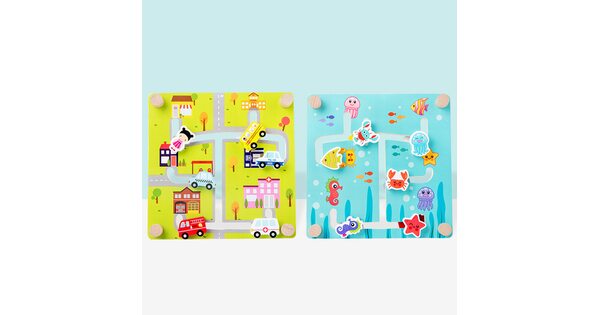 Игрушка улучшает моторику кисти и пальчиков. Ведь малышу приходится «водить» фигурками по извилистому лабиринту. Ему приходится сопоставлять предмет и место назначения. А еще – следить за тем, чтобы две разных фигурки не пересеклись на одном маршруте. Таким образом происходит развитие логического мышления!