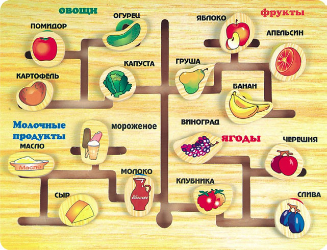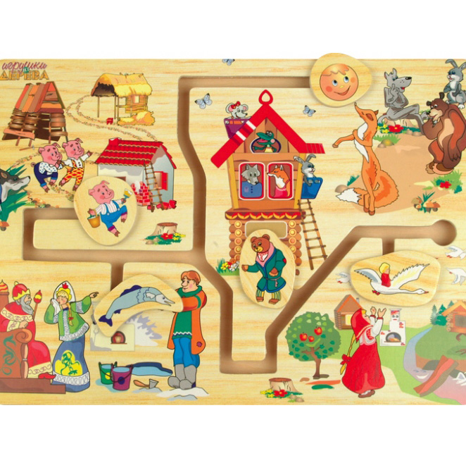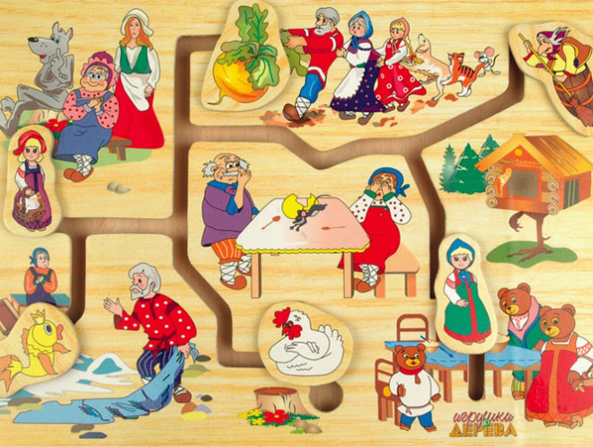 Требуется распределить фигурки по дощечке согласно определенному правилу. Например, «привести» героя в соответствующую сказку. Или «соединить» инструмент и профессию. Во время игры ребенок: