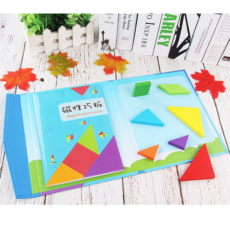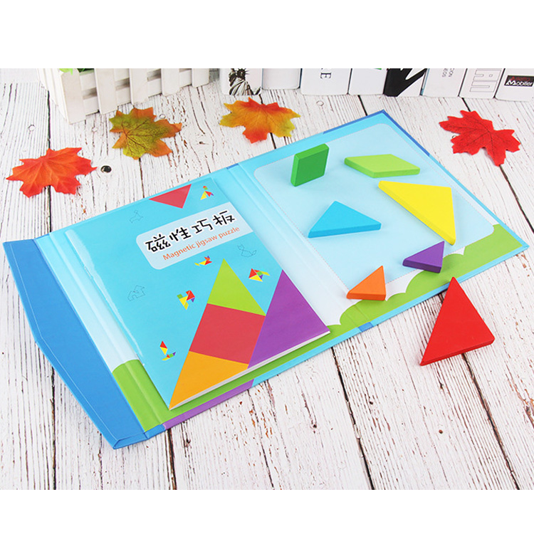Популярная головоломка во всем мире - танграм для Вашего ребенка. Удобное решения данной головоломки представлено на нашем сайте. Все детали магнитные, упакованы в удобную папку с магнитным замком и прикрепленной книжечкой с примерами в чёрном и цветном вариантах. Очень удобно взять с собой для полезного времяпровождения в дороге, на пикнике, отдыхе.