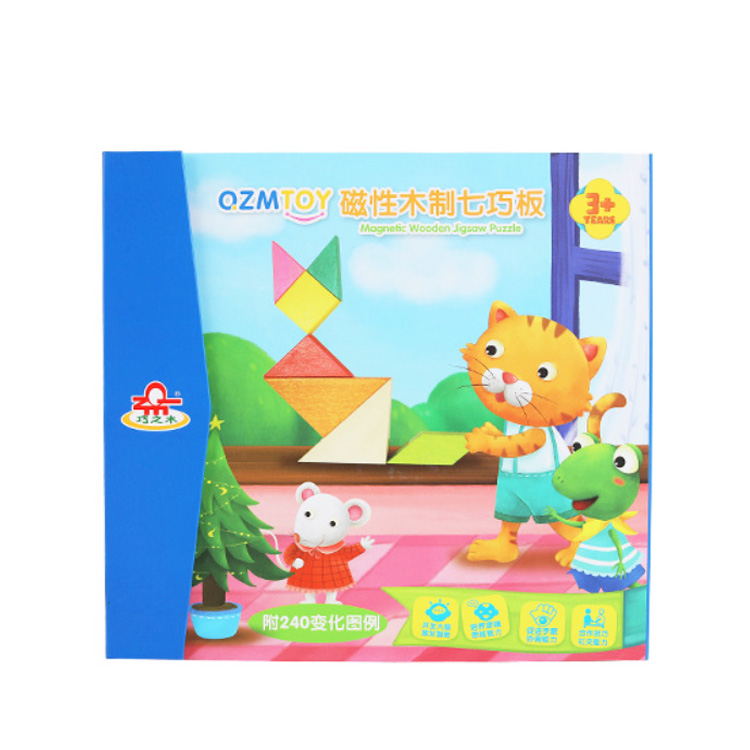 Увлекательная игра для развития логического мышления, фантазии. Не нужно приобретать специальные доски для игры с магнитным танграмом. В данном наборе есть все: магнитные детали , магнитное рабочее поле на одной из сторон папки, книжечка с 240 примерами всевозможных схем и рисунков. Задания в книжечке выполнены только в чёрном цвете, что увеличивает сложность выполнения задач, но тем самым делает игру интересней.