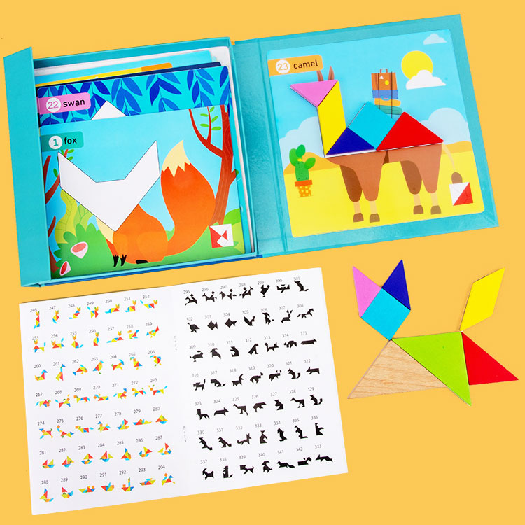 Занимательный танграм с интересными и познавательными заданиями в картинках. Детали танграма магнитные и отлично крепятся к папке. В набор входят также 24 двухсторонние карточки с заданиями в полный размер деталей.