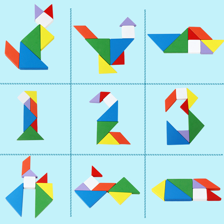 Деревянная головоломка танграм очень популярна для развития логического мышления. Казалось бы 7 деталей, а их нужно правильно сложить в основания, да таким образом, чтобы все пространство было занято деталями. И с этих же деталей можно выложить очень много разнообразных фигур животных, цифр, букв. Скучать не придется.