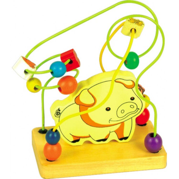 Лабиринт "Свинка" представляет собой искусственно созданную ситуацию. Он предназначен для самых маленьких детишек. Данный деревянный лабиринт произведен из натуральных пород деревьев, предпочтительнее хвойных, а также окрашен безопасными лакокрасочными покрытиями, которые невозможно ободрать или стереть. Современный лабиринт имеет несколько колечек, нанизанных на проволоке. Задача вашего малыша заключается в помощи свинке – собрать колечки в одном месте.