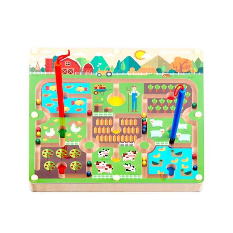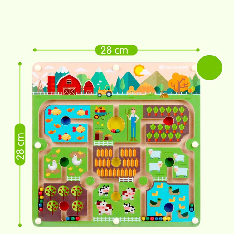Интересная игра-лабиринт в виде фермерских угодий с животными станет надежным помощником для маленького непоседы. Задача непростая: используя магнитную палочку, прокатить шарики по дорожкам угодий. Нужно избегать попасть в тупик. Игрушка научит ребенка ловкости, моторики пальцев, терпеливости, основам логики. Хороший фундамент для подготовки руки к письму.