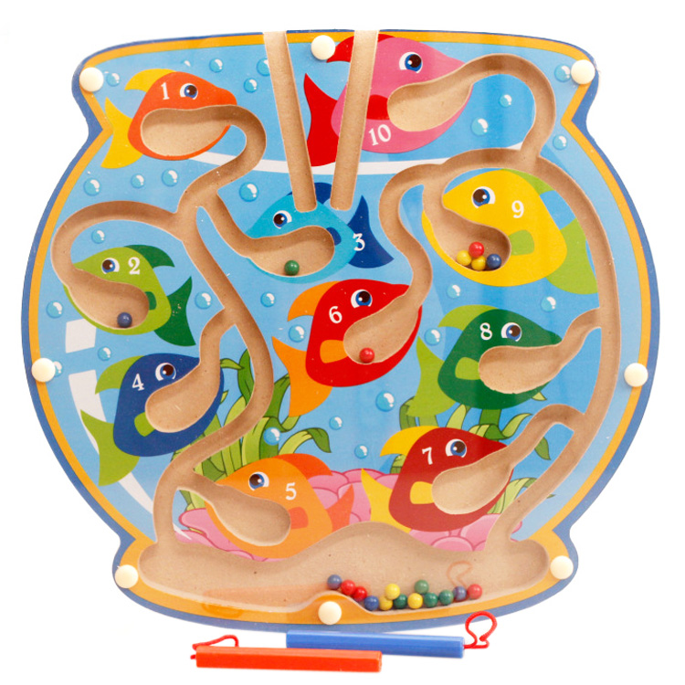 Магнитный лабиринт «Аквариум» выполнен из дерева. Этот материал наиболее безопасный и полезный для рук малыша. Игрушка головоломка развивает ловкость и сноровку, точность движений, глазомер, координацию. Они пригодятся ребенку во время занятий спортом и коллективных подвижных игр!