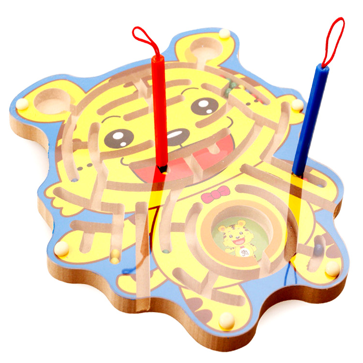 Лабиринт с запутанными дорожками по которым нужно передвигать разноцветные шарики с помощью магнитных палочек. Лабиринт выполнен в виде симпатичного тигренка.