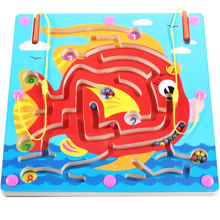 Красочный магнитный лабиринт с нарисованной красной рыбкой. С помощью такой игрушки, ребенок познакомится с цифрами и научится считать. в набор также входит игра "Летяшки".