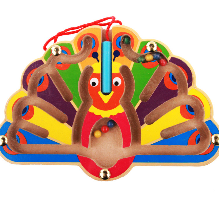 Магнитный лабиринт "Павлин" непременно понравится малышу своим эффектным видом. Но фигурка – с секретом! Ведь павлин с большим хвостом - не только яркая, оригинальная игрушка, но и увлекательная головоломка. К деревянной птице привязана специальная магнитная ручка - стилус, с помощью которой цветные шары в прорезях доставляют к маленьким лункам. Такая игра оказывает положительное влияние на развитие мелкой моторики, стимулирует логическое мышление. Магнитный лабиринт "Павлин" может стать проверкой на ловкость не только для малыша, но и для взрослых!