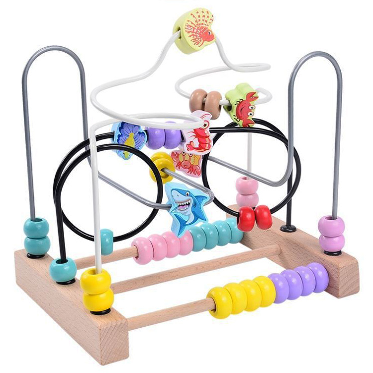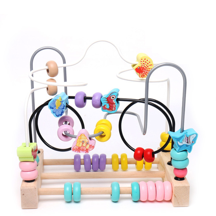 Пальчиковый лабиринт-счеты "Рыбки" с деталями в виде морских обитателей и разноцветными бусинками.