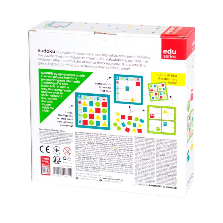 Представляем Вашему вниманию вариант игры "Судоку" от ТМ "Игротека" - Судоку геометрическое. Играя, ребенок учится логически мыслить, подбирать варианты, развивает внимание, терпение, усидчивость.