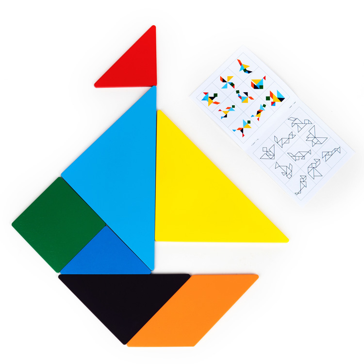Практичный и компактный набор из категории детских забав «Головоломки, лабиринты» пригодится для всестороннего, раннего развития дошкольника. Цветные детали танграма 30х30 научат кроху логически мыслить, собирая различные картинки с изображением предметов и животных, растений, техники, замысловатых цветов при помощи различных геометрических фигур.
