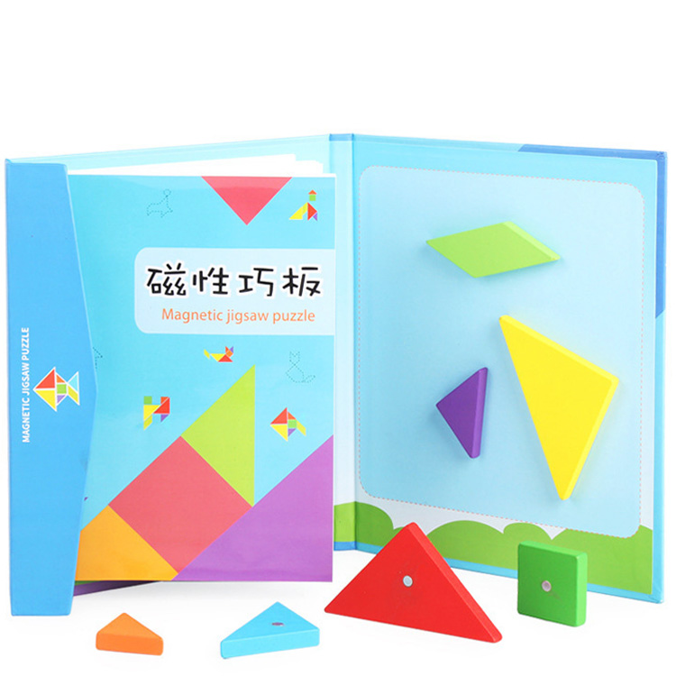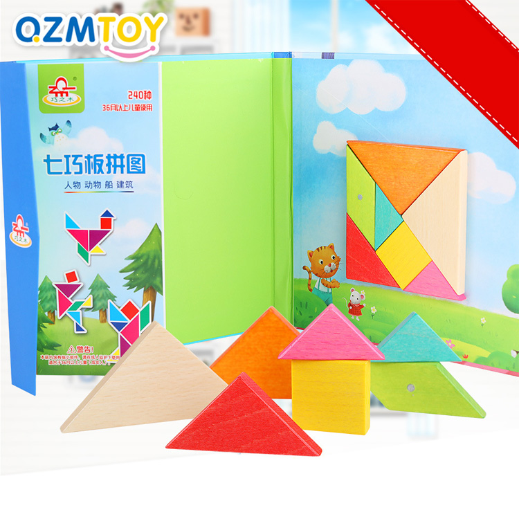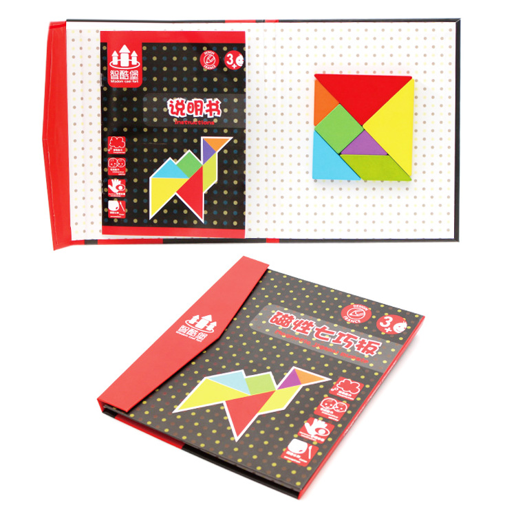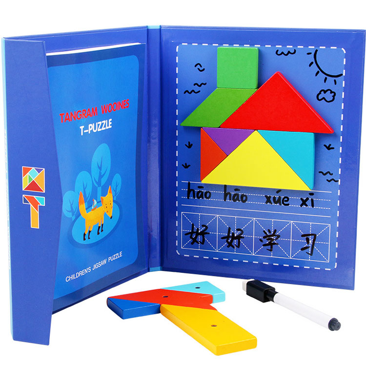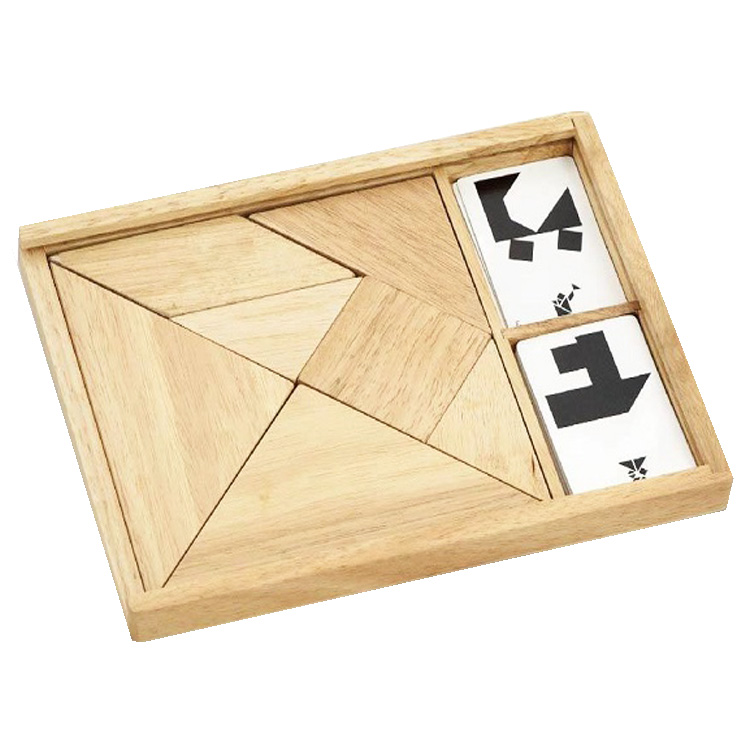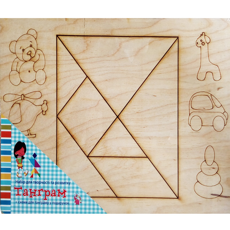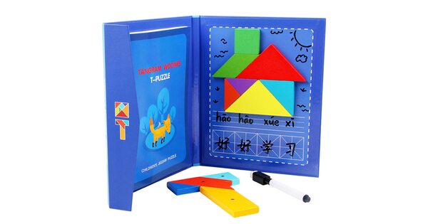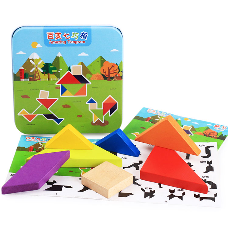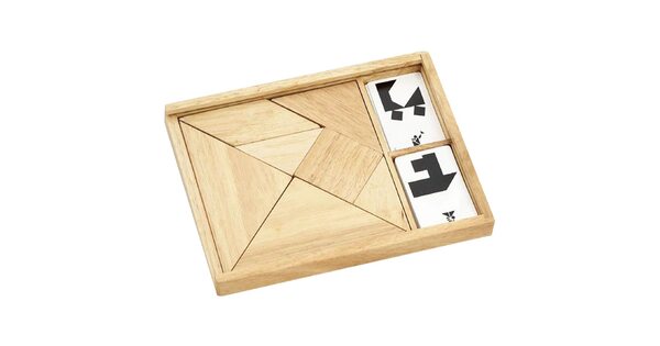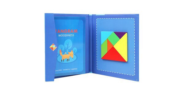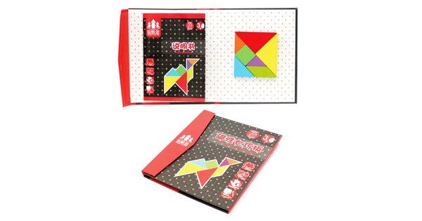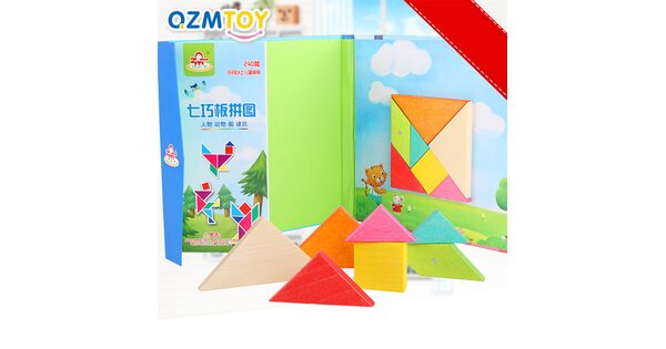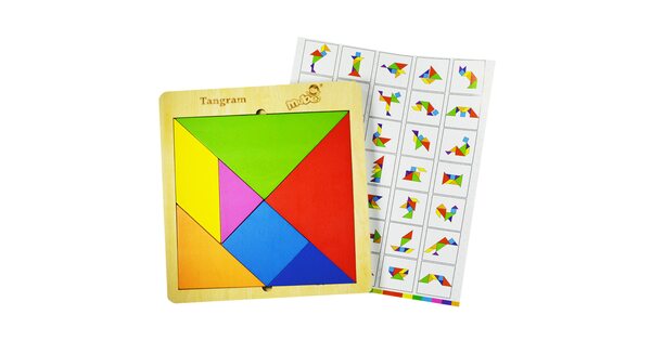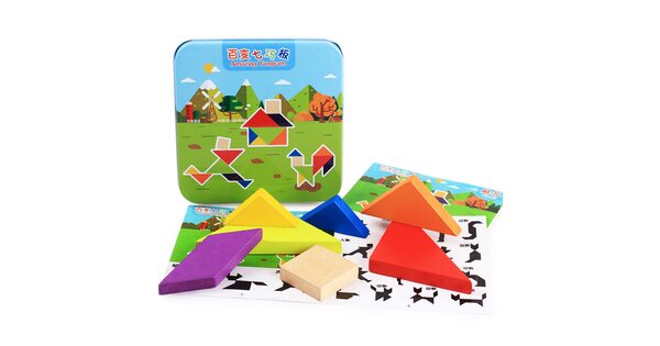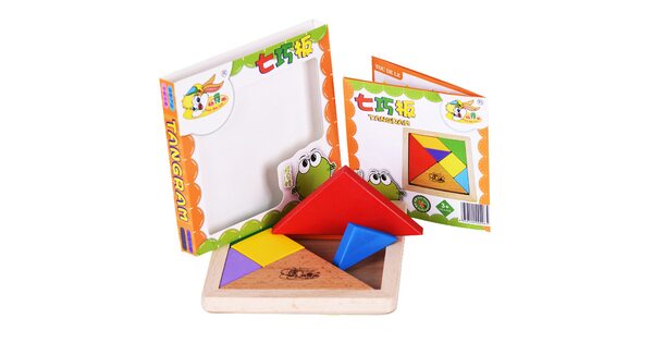 Сегодня tangram ассоциируется с детскими товарами и продаётся в интернет-магазине игрушек. Как правило, наборы выполняют из дерева. Деревянные элементы – приятные для детских рук, прочные, водостойкие. Иногда их дополнительно делают магнитными. Детали окрашены в базовые цвета – детям так интереснее. Но есть варианты неокрашенных головоломок.