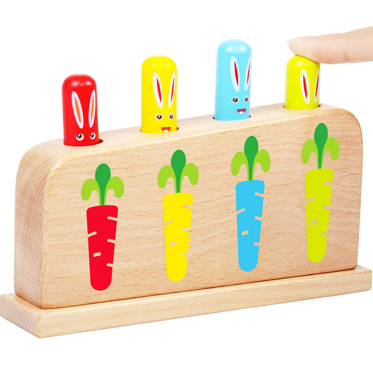 Развивающая игра «Зайки попрыгайки» пригодится для самых маленьких непосед, изучающих свойства различных предметов, их цвет и количество. Удобна деревянная забава, используется для игр в компании, самостоятельных упражнений на развитие ловкости и координации движений. Дети с удовольствием играют с цветными деревянными зайчиками, которые едят морковку в огороде и быстро выпрыгивают при малейшем нажатии. Увлекательная Игра «Зайки попрыгайки» найдет своих поклонников среди мальчиков и девочек в возрасте от 1 годика до 3-х лет. Легкость применения конструкции позволяет малышам повторять не сложные манипуляции одну за другой, легко запоминая всего 3 цвета: красный, жёлтый, голубой. Игрушка используются для самостоятельных забав ребенка или в группе. Гладкая поверхность твердых деталей из дерева не имеет острых углов и сколов и не причинит малышу каких- либо травм во время игры. Веселая забава способствует: