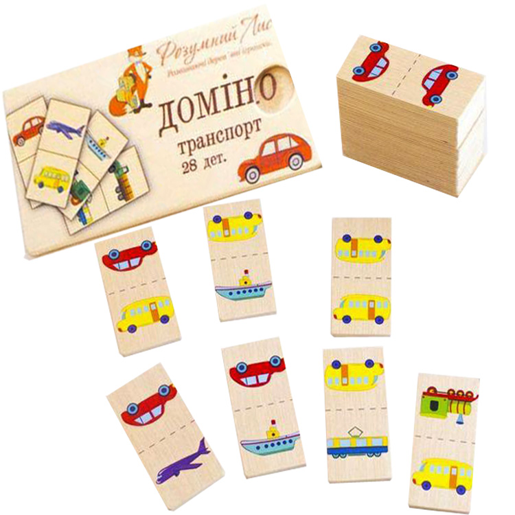 Игра домино с картинками различных видов транспортных средств. Играя, малыш знакомится с видами транспорта, учится подбирать, логически мыслить.
