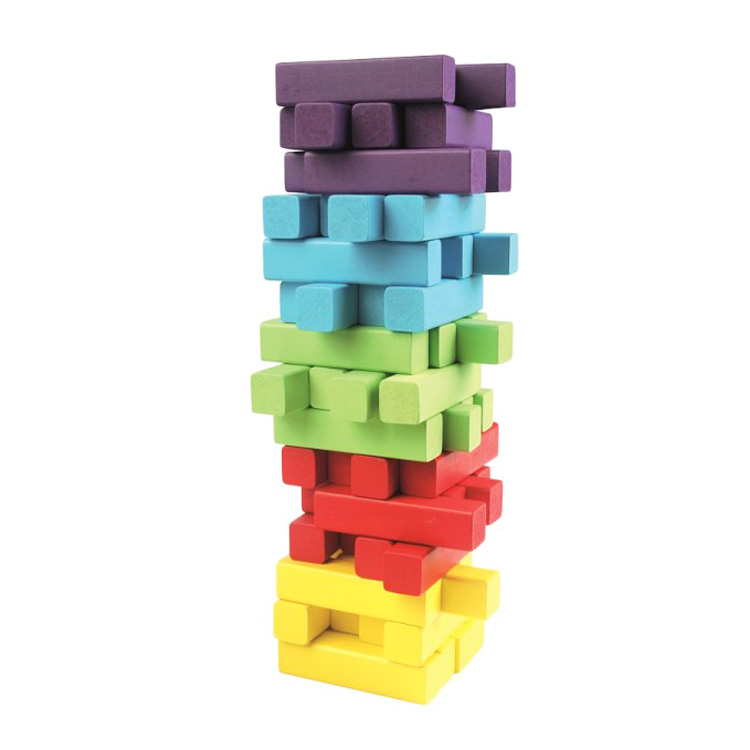 Увлекательная игра для компании друзей и всей семьи. Выставляем цветные блоки и поочередно вытягиваем по одному блоку в том месте, где Вы считаете, что башня при этом не развалится. Проиграл тот игрок, после хода которого башня рухнула. В набор входят 60 цветных блоков, игральный кубик, который и определяет цвет блока, который нужно вытянуть.