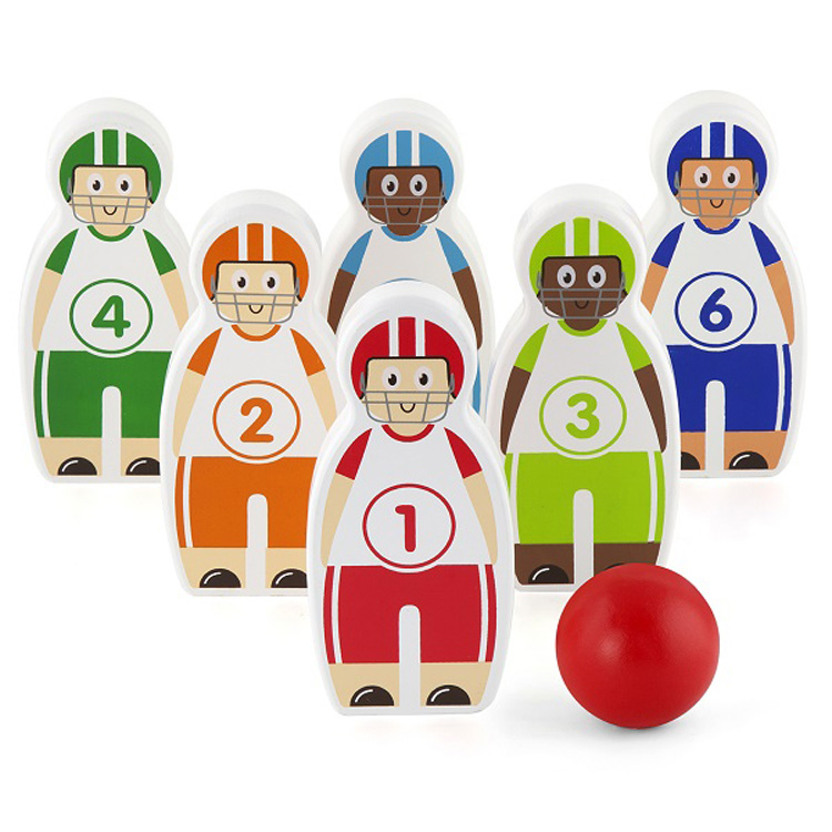 Сбивать фигуры в настоящем боулинг-клубе ребёнку 3-4-х лет рановато. А вот детский боулинг от ТМ Viga Toys с маленькими деревянными фигурками можно организовать и дома. Принцип игры такой же, как у взрослых. Необходимо сбить как можно больше фигур одним ударом.