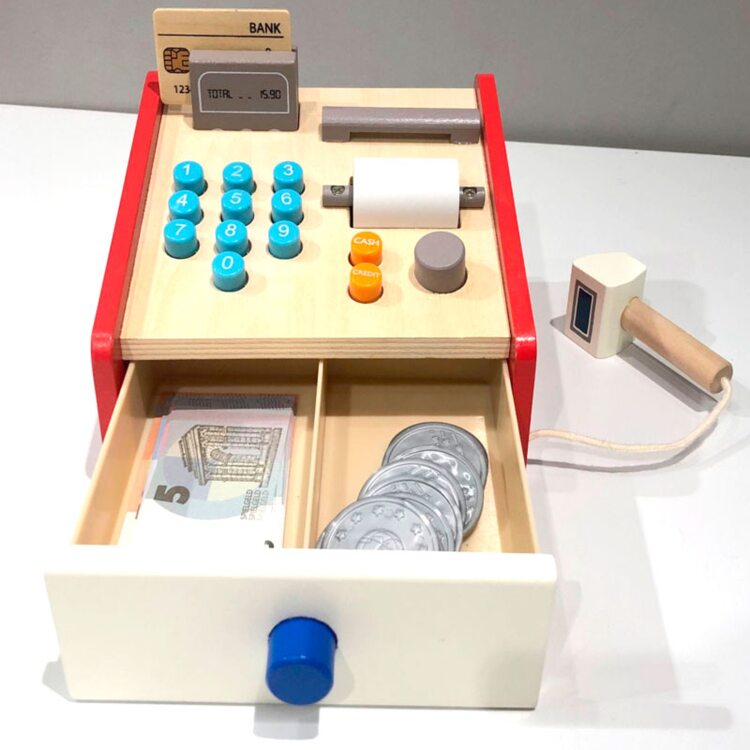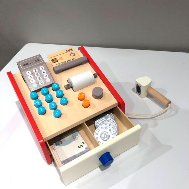 Устроим супермаркет у себя дома. Ваш малыш сможет стать настоящим кассиром. Кассовый аппарат имеет все необходимые функции: устройство для считывания штрихкода, оплата наличными или безналичный расчет, выдача чека. С таким аппаратом, ребенок в игровой форме научится считать, суммировать или вычитать (давать сдачу).