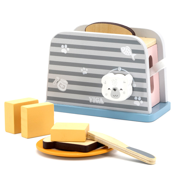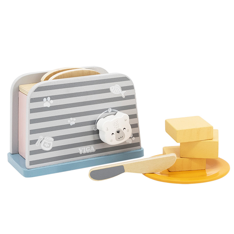 Тостер на кухне незаменимая вещь. Хрустящие тосты намазанные свежим маслом - необычайно вкусное блюдо. Теперь и Ваш ребенок сможет самостоятельно готовить тосты не боясь пораниться или обжечь пальчики. В наборе 8 предметов: сам тостер, ломтики хлеба, масло, тарелочка и деревянный нож. Прекрасная игрушка для социализации Вашего малыша к самостоятельным действиям (без помощи взрослых).