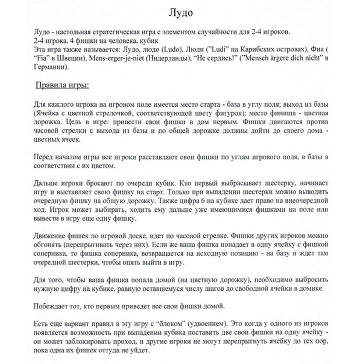 В набор входит еще одна не менее интересная игра -Лудо. С правилами данной игры Вы можете ознакомится на дополнительной картинке .