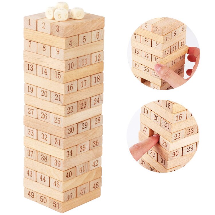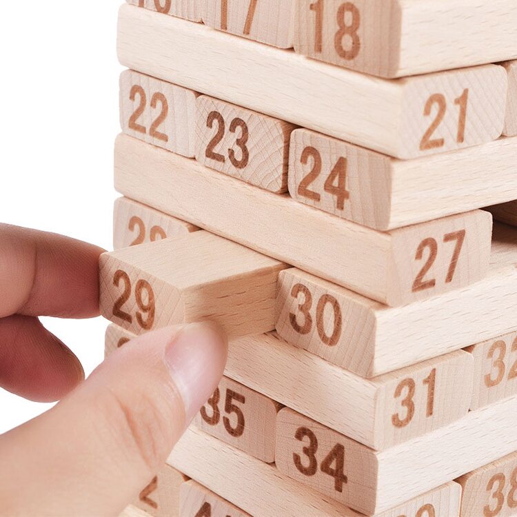 Игра для всей семьи для интересного времяпровождения. Выстраиваем башню из брусочков и поочередно вытягиваем брусочек за брусочком. Кто неосторожно вытянет детальку из башни и она упадет, тот и проиграл.