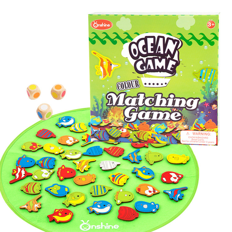 Увлекательная игра для всей семьи или в кругу друзей. Набор состоит из разноцветных рыбок, которые имеют цветовую комбинацию из 3-х цветов, а также 3-х игральных кубиков на гранях которого нарисован определенный цвет. Самый младший ребенок или первый игрок начинает игру и выбрасывает сразу 3 игральных кубика. Цель состоит в том, чтобы найти первым ту рыбку, которая соответствует выпавшей цветовой комбинации на кости. Кто больше наловит рыбок тот и будет лучшим рыбаком (победителем).