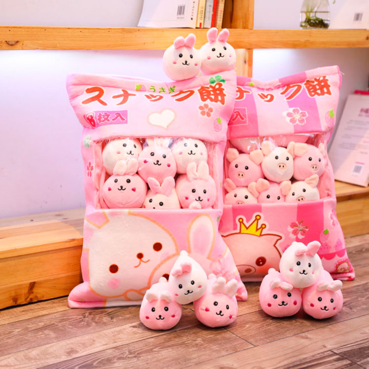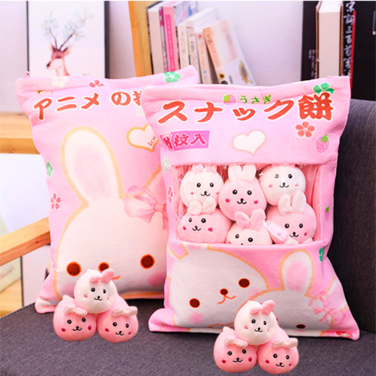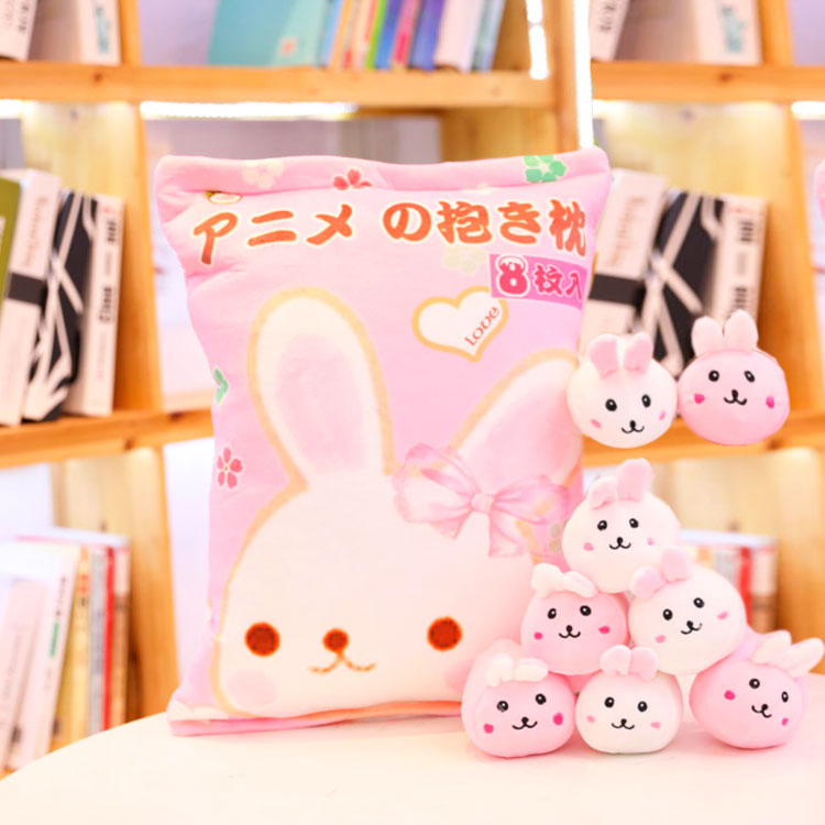Плюшевые зайчики спешат к Вам в гости. Прекрасный вариант подушки с зайчиками, которую всегда можно взять с собой в путешествие. Когда малышу нужно отдохнуть - мягкая подушечка, а когда поиграться - компания зайчиков в этом поможет. Подушечка закрывается на молнию, что очень удобно и практично во время использования ее как игрушки. Вместо зайчиков можно положить что-то другое и Ваш малыш будет только этому рад. В набор входят 8 зайчиков по 4 шт. розового и белого цвета.