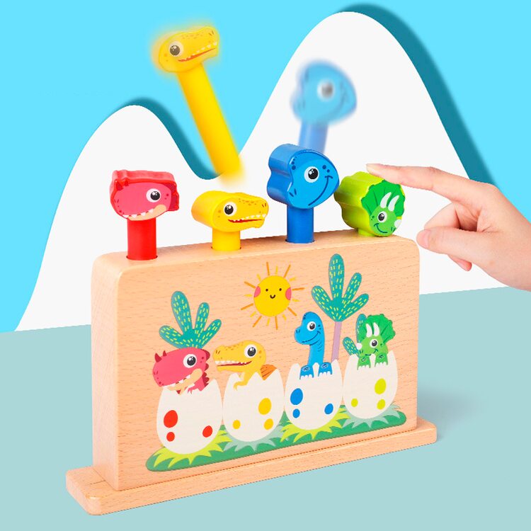 Вы когда то видели, чтобы динозавры прыгали. В этой игрушке динозавры выскакивают со своих мест просто при нажатии на них. В каждой их ячеек стоит пружина, при резком нажатии на которую она сжимается и выбрасывает динозавра. Для того, чтобы динозавры выпрыгнули нужно резко нажать на динозавра и также быстро отпустить его.
