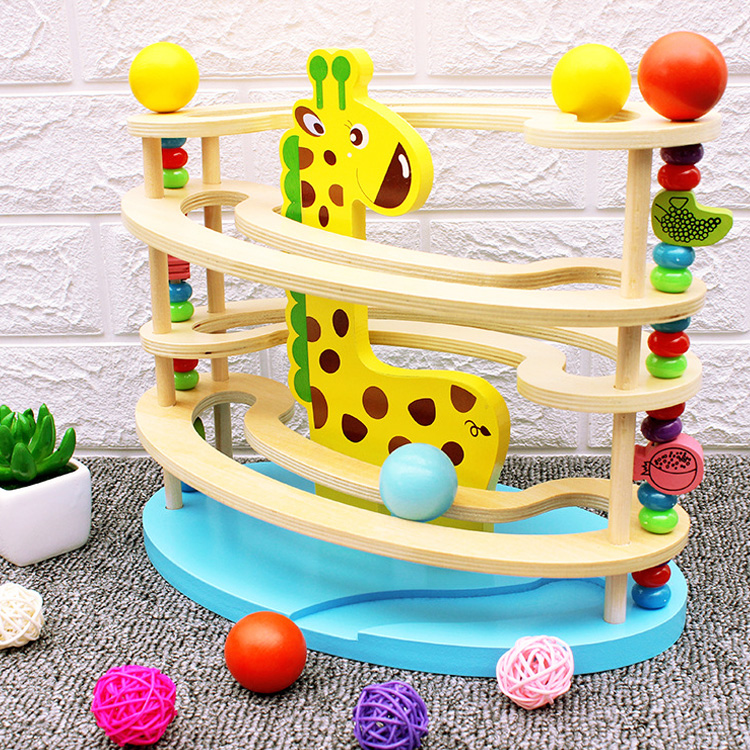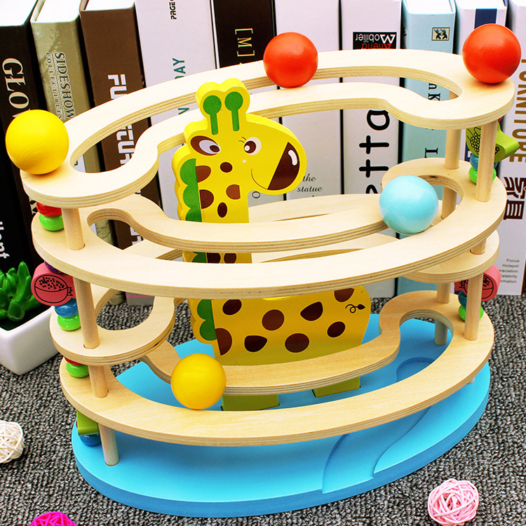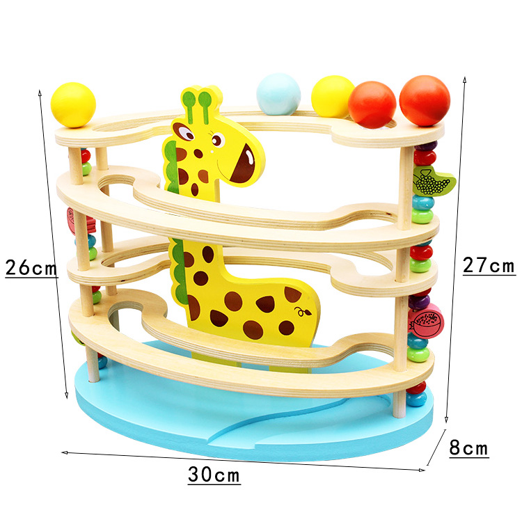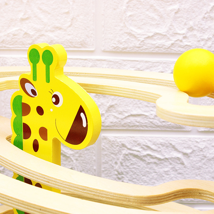 Игра с деревянными шариками. Интересно наблюдать как шарик за шариком скатываются вниз по дорожкам высокой башни. Комплект состоит из башни с красивым жирафиком в центре и 3-х цветных шариков.
