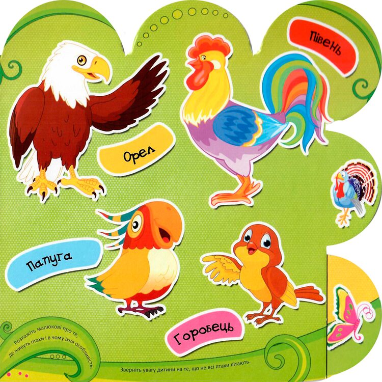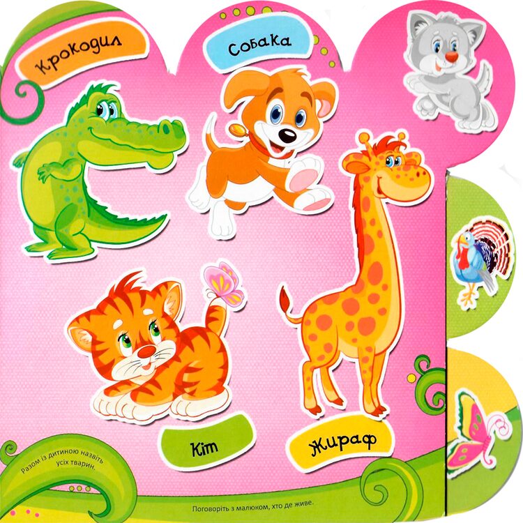 Моя первая книжка «Рыбы, животные, птицы, насекомые» предназначена для развития внимания, наблюдательности, цветовосприятия. Картинки необходимо показывать малышу регулярно и называть изображенный на страничке объект. Так формируется его словарный запас и представления об окружающем мире.