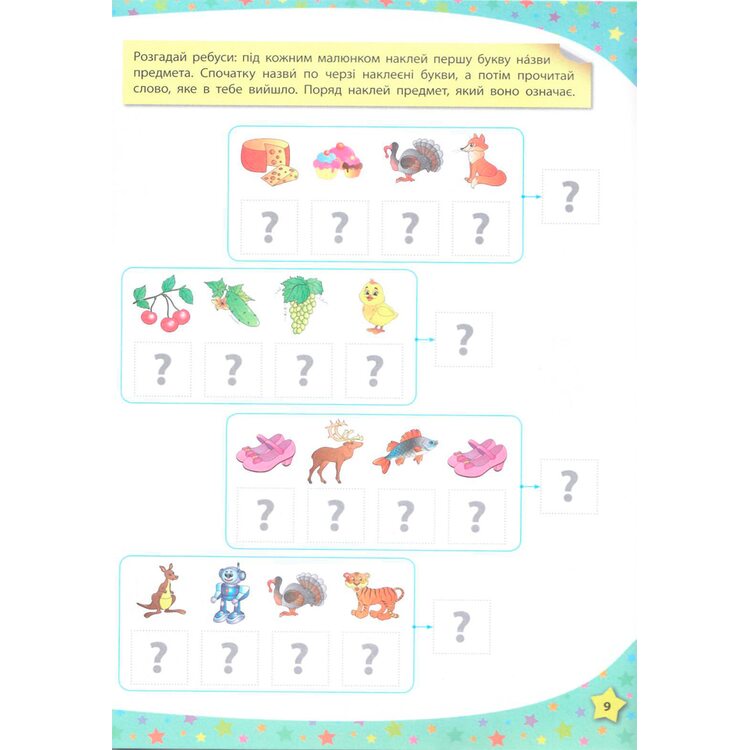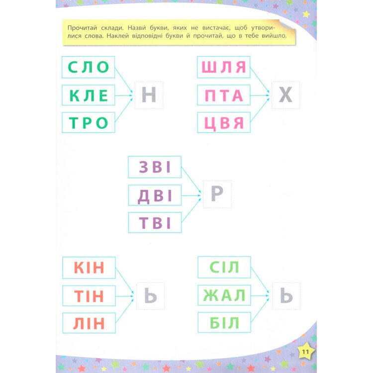 С этой книгой ребенок повторит буквы украинского алфавита, сможет складывать слова по складам, а предложения - со слов с помощью малыша и наклеек. В игровой форме ребенок научится читать по слогах слова и предложения. В книге много простых и интересных заданий для развития внимания, логики, памяти. а также развитию мелкой моторики.