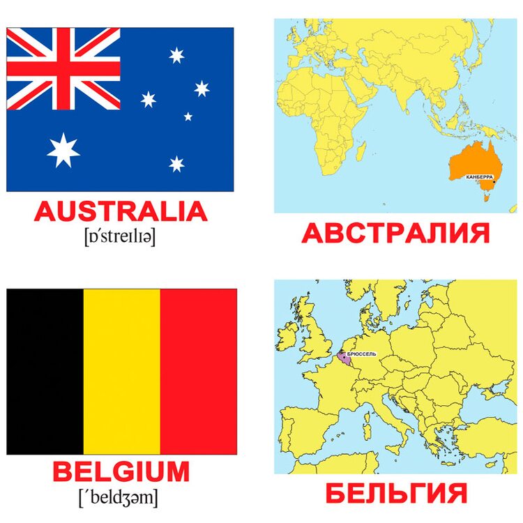 Знакомимся и учим названия 40 стран мира на английском и русском языках: Украина, Польща, США, Португалия, Великобритания и т.д.
