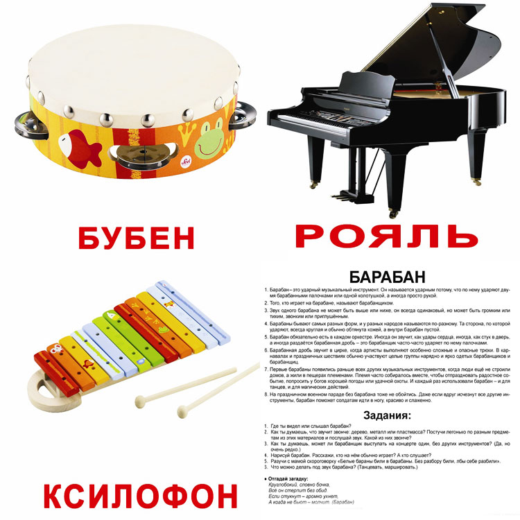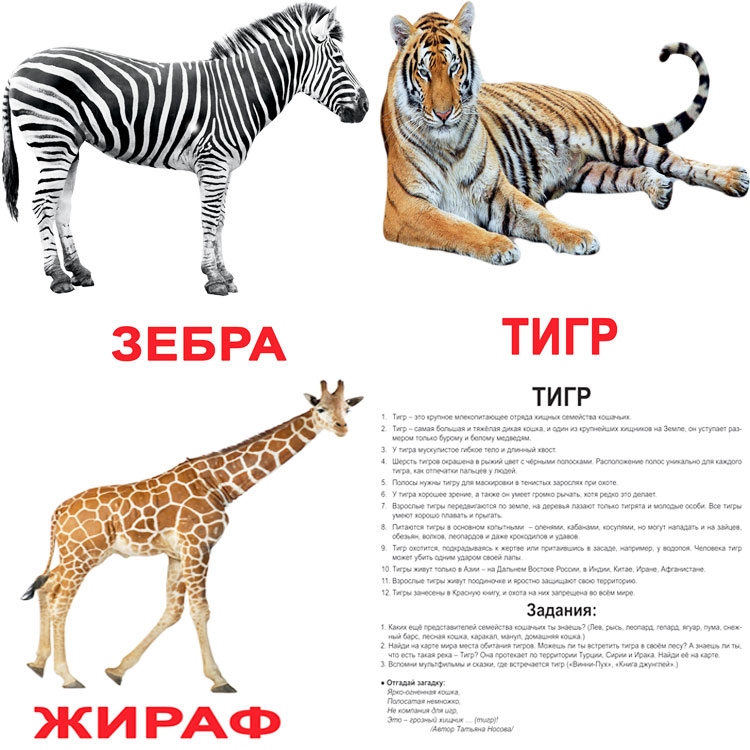 Когда ребенок хорошо запомнит названия всех объектов, берется следующая партия карточек. И так далее. Когда все картинки малыш уже знает, занятие усложняется. Теперь к названию добавляется какая-то информация. Чтобы взрослым не приходилось искать ее, основные сведения об объекте написаны тут же – мелким шрифтом.