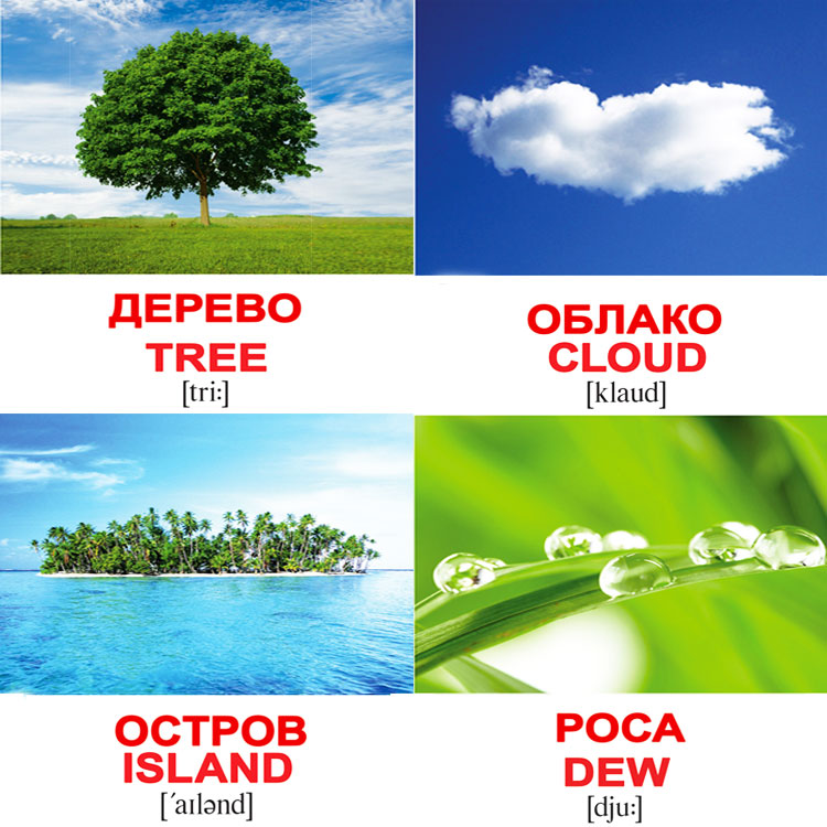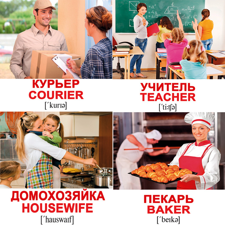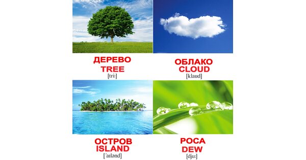 Родители маленьких детей знают: учить ребенка иностранному языку нужно как можно раньше! С этой целью украинская компания «Вундеркинд с пеленок» выпустила наборы карточек Домана русско-английские и англо-русские. Под каждой картинкой 2 варианта написания слова. Английский вариант дается с транскрипцией.