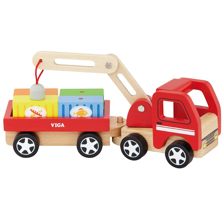 В первую очередь автокран от ТМ Viga Toys заинтересует мальчиков. Хотя, по сути, игрушка не имеет строгой привязки к полу. Перемещать объекты на колесах любят и девочки. В комплект поставки входит и сам «груз» – цветные контейнеры с изображением продуктов.
