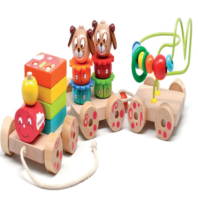 Паровозик с вагончиками, на которых размещена отдельная игра: на локомотиве - квадратная пирамидка, 1-й вагончик - круглая пирамидка "Зверята", 2-й вагончик - пальчиковый лабиринт. В данной игрушке есть все для развития мелкой моторики малыша.