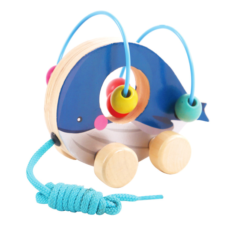 Деревянная каталка на ниточке с пальчиковым лабиринтом в виде китенка.