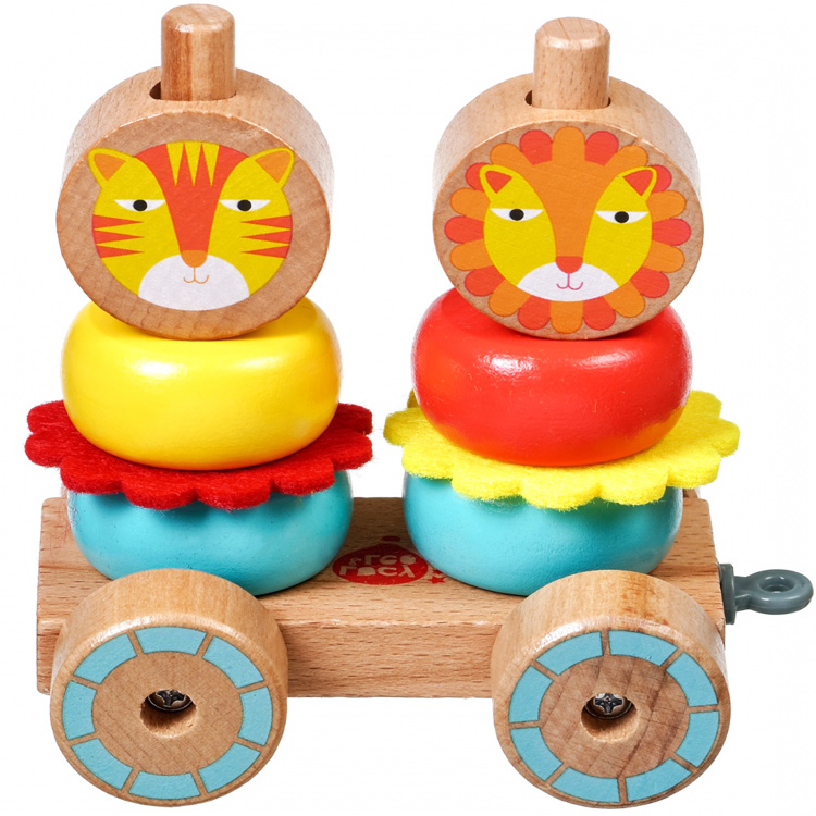 Игрушка каталка состоит из восьми съёмных деталей, приятных на ощупь. Качество обработки и продуманность формы позволяет родителям не беспокоиться о безопасности малютки. Детишки могут не только увлечённо катать львиную семью на тележке, но весело и с пользой проводить время, собирая и разбирая каталку-пирамидку «Львиная семья». Папу и маму львов можно переодевать, меняя местами цветные колечки, что очень увлечёт непоседу и позволит ему проявить фантазию. Яркие изображения зверей нравятся малышам и вызывают у детей только положительные эмоции.