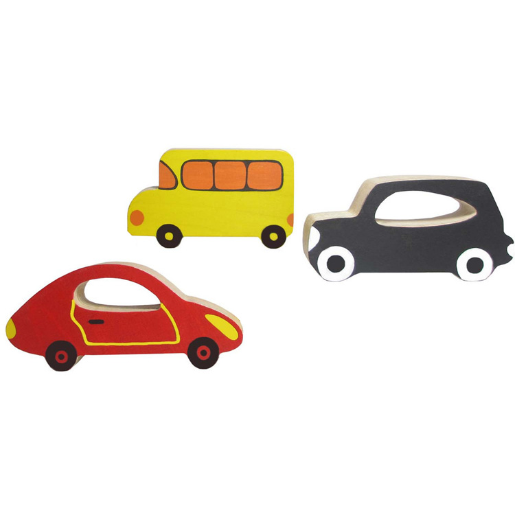 Разноцветные машинки сделаны из натурального дерева. В набор входит джип, автобус и спортивная машина. Такой комплект машинок станет настоящим кладом для маленьких непосед и юных автолюбителей.