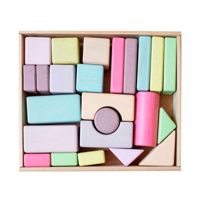 Настоящий деревянный конструктор для самых маленьких. Конструктор с деталями в виде различных геометрических фигур. Детали окрашены в приятные пастельные цвета.