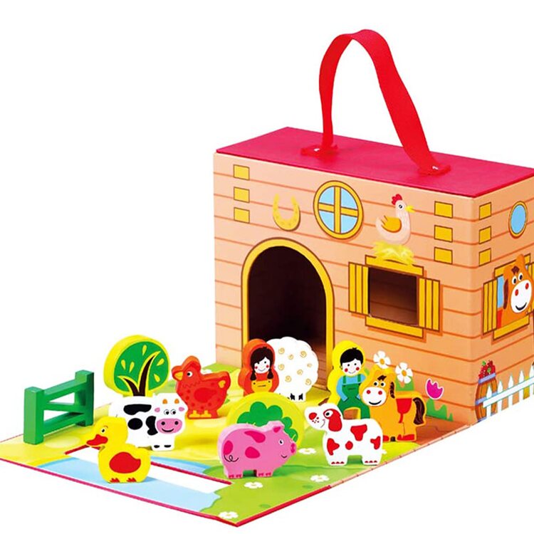 Двенадцать деревянных тематических фигурок, которые в целостности являются фермой с животными. Игрушки из натурального дерева считаются экологически чистыми. Изготовитель – компания "Bino" делает акцент на том, чтобы в своем производстве использовать только высококачественную древесину.
