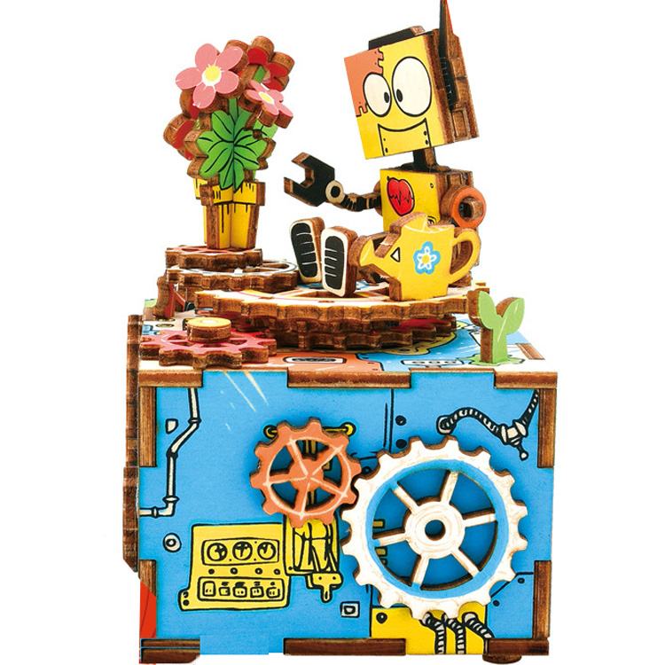 Мир техники вторгается в жизнь малыша с самых ранних лет. Чтобы не было соблазна лезть в папины инструменты и откручивать крышку у пульта телевизора, можно купить ребенку музыкальный конструктор "Робот" заводной. Эта уникальная игрушка сделана из дерева и снабжена самыми настоящими рабочими шестеренками. Если комплект собран правильно, конструктор превратится в музыкальную шкатулку, а робот и горшочек с цветком начнут вращаться. Заводной музыкальный конструктор "Робот" - новинка торговой марки Роботайм.