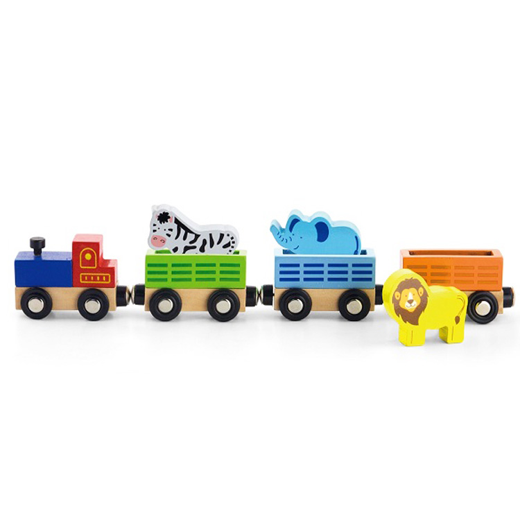 Набор для железной дороги с представителями дикой природы: лев, слон, зебра. В наборе 3 вагона, паровоз, слон. зебра и лев.