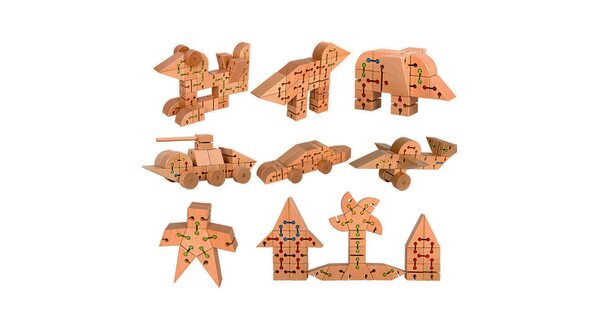 Поскольку дети растут, конструкторы постепенно меняются. Сначала это простые кубики с «окошками», башенками, арками. Затем – блоки для постройки транспортных магистралей. Наконец, ребенок 5-7 лет собирает сложные архитектурные и тематические объекты и даже успешно осваивает Танграм. Например, из набора «Фантазия» украинского производителя Igroteco можно собрать любой объект. А восьмиугольные детали «Оригинального» конструктора Dabitoy предназначены для сооружения необычных зданий!